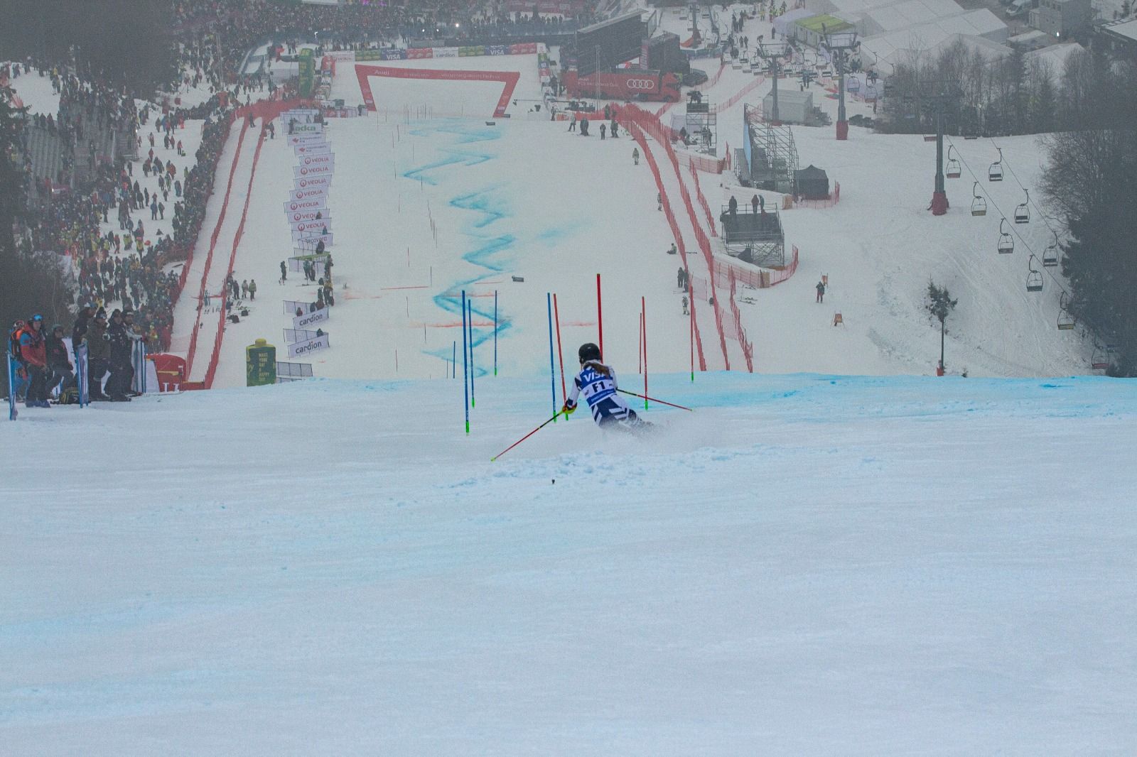 O víkendu měla Viki Dlouhá možnost podívat se mezi světovou špičku, když dostala šanci jet jako předjezdec na závodu světového poháru ve Špindlerově Mlýně. Zkušenost to byla velmi cenná. Prostředí závodu světového poháru má mimořádnou atmosféru a i "pouhý" start v pozici předjezdce byl velmi intenzivní zážitek. Zároveň tato zkušenost ukázala, jak moc vysoko je úroveň jezdců světového poháru. Vedle toho neuvěřitelně náročná ledová podložka ukázala, že pouhé přiblížení k úrovni těch nejlepších je náročná a dlouhá cesta, proto si uznání zaslouží každý, kdo se do svěťáku vůbec dostane.